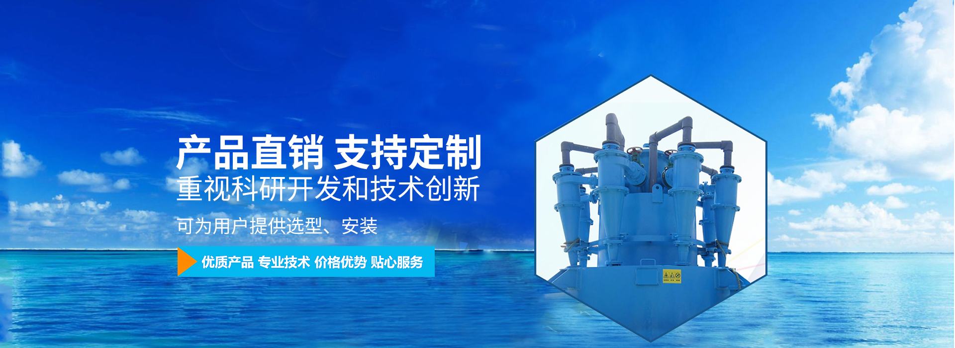 重視科研開發(fā)和技術(shù)創(chuàng)新應(yīng)用于多范圍,多行業(yè) 威海昌浩環(huán)保設(shè)備有限公司,位于美麗的海濱城市威海,主要產(chǎn)品有各種聚氨酯旋流器、水力旋流器、三產(chǎn)品重介質(zhì)旋流器、水力分級濃縮旋流器系列、重介質(zhì)旋流器系列、耐磨管件系列、耐磨漿閥系列、耐磨材料系列、脫硫脫硝用旋流器系列、粗煤泥分選機、 TDU橡膠帶式真空過濾機、真空過濾機等。 我廠生產(chǎn)力旋流器及水力旋流器組,品種多,規(guī)格全,應(yīng)用范圍廣,在有色、黑色、非…
